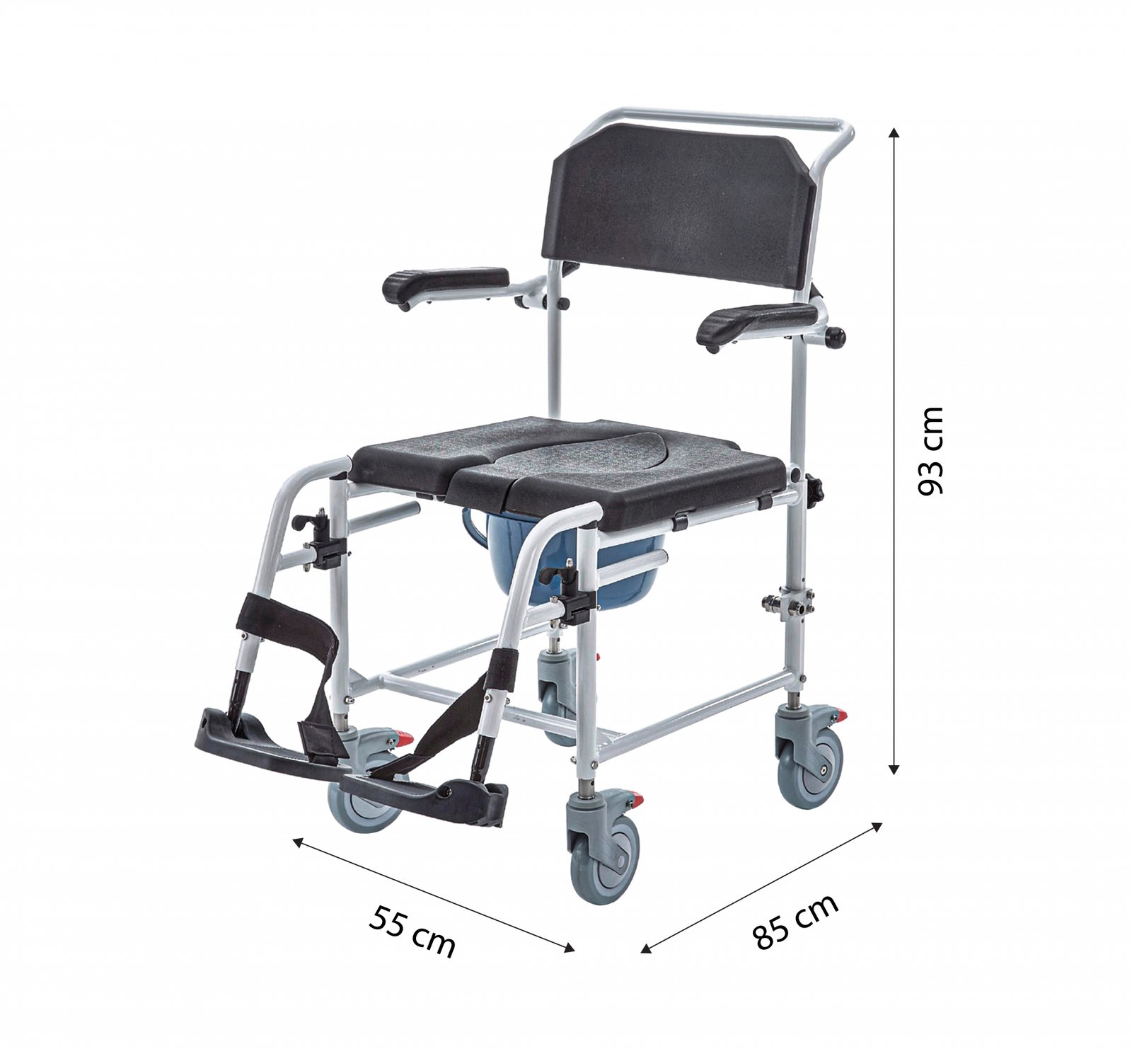Ypač manevringas, aliumininis tualeto-dušo kėdė AKVA skirtas asmenims iki 120 kg svorio, turintiems laikinų ar ilgalaikių mobilumo problemų. Šis universalus vežimėlis, pagal poreikį, gali būti naudojamas pervežimui patalpose, taip pat kaip tualeto ar dušo kėdė. Vežimėlį varyti gali tik palydovas, naudodamasis stūmimo rankena, sumontuota virš atlošo. Visos vežimėlio gamybos medžiagos yra atsparios korozijai, todėl jis puikiai tinkamas naudojimui dušo patalpose.