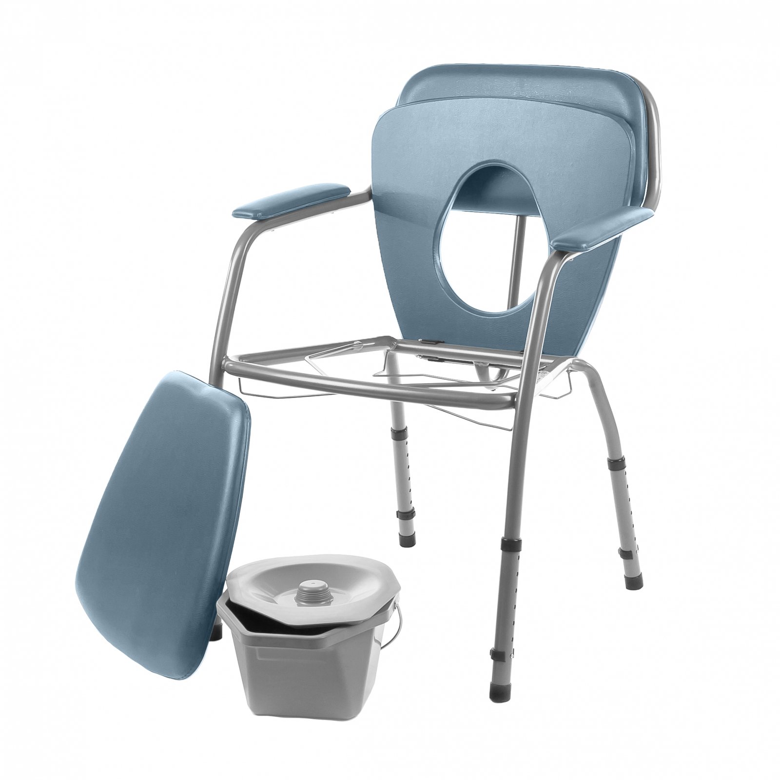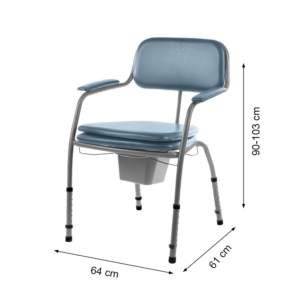 Stabili 9,5 kg kėdė pritaikyta naudotojui iki 130 kg svorio. Rėmas pagamintas iš dažyto plieno, kėdės atlošas ir porankiai – aptraukti lengvai valoma dirbtine oda, paminkštinti. Sėdimoji dalis – taip pat paminkštinta su uždaros formos 24×21 cm išpjova, iš viršaus uždengiama paminkštintu dangčiu. Į kėdės komplektaciją įeina uždengiamas 5 l naktipuodis, įstatomas ant specialių laikiklių iš viršaus. Tualeto kėdė pristatoma pilnai paruošta naudojimui.