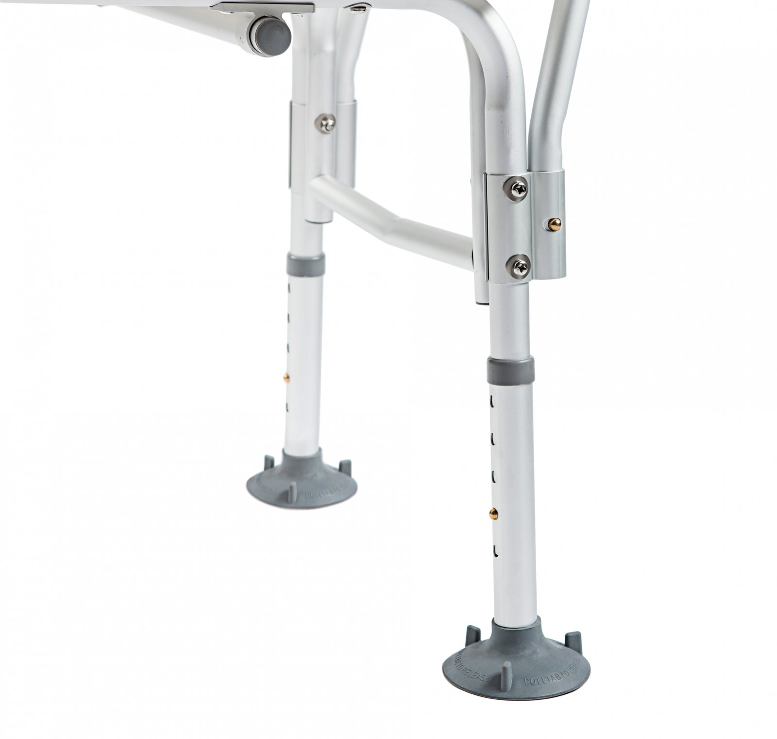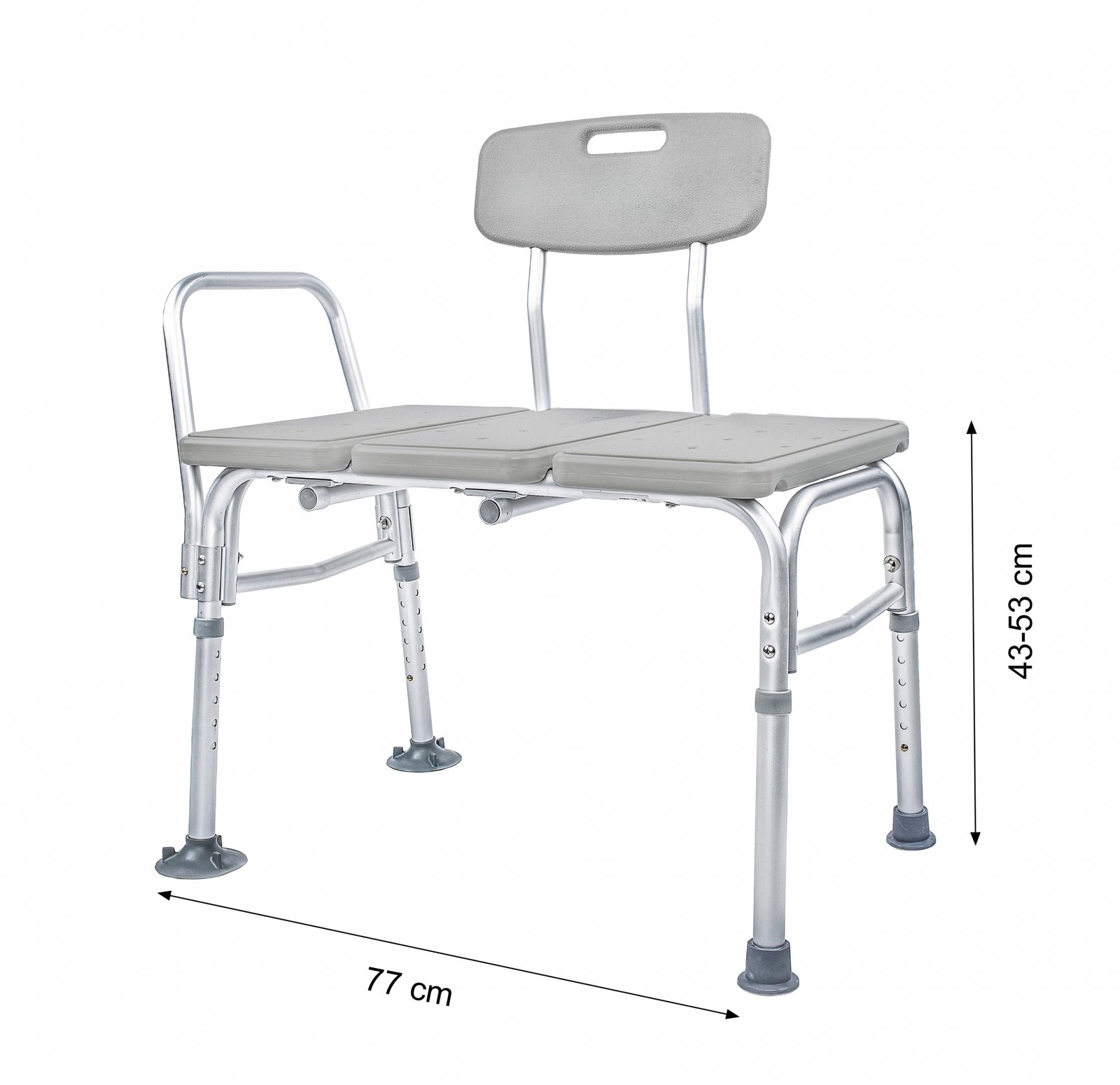 Jis pagamintas iš tvirto, neslidaus plastiko ir kokybiško aliuminio. Sėdimoji dalis – su skylutėmis vandeniui nubėgti, patogus nugaros atlošas – su išpjova. Yra atrama rankai vienoje pusėje. Tinka asmenims iki 100 kg svorio.